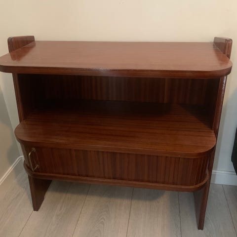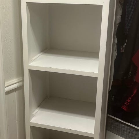 Godt brukt hylle med hjul selges. Trenger litt kjærlighet, men er ellers i god stand! De synlige bruksmerkene på hyllen har jeg plassert inntil veggen, ellers er det få merker man ser☺️