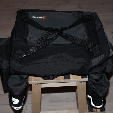 Biketec sykkelveske i grå og gul farge. Vesken har toppåpning med klaff og spenne, samt innvendig snorstramming. Den har bærestropper og festekrok, og er beregnet for montering på sykkel. Egnet til transport og oppbevaring av mindre gjenstander på sykkelturer.