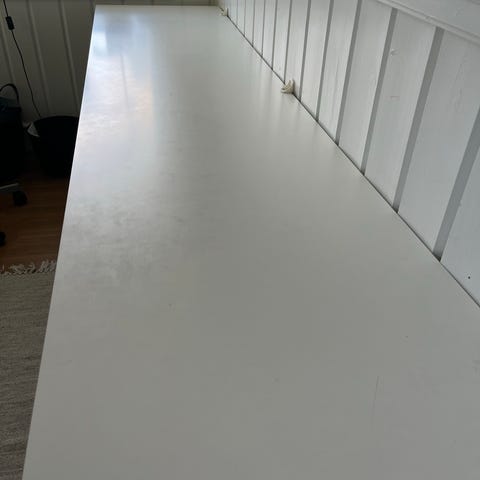 Hvit bordplate i sponplate.