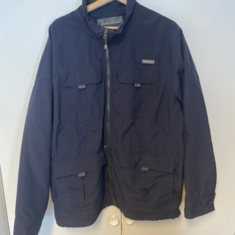 Peak Performance jakke for herre i størrelse XL. Jakken er blå og laget i polyester. Den har høy krage med ribb, glidelåslukking i front og flere lommer med klaff og knapp. Innvendig er jakken vattert for ekstra isolasjon. Passer som hverdags- og fritidsjakke i kjøligere vær.