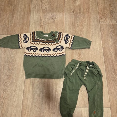 Hust & Claire ull bambus sett for gutt i størrelse 74. Body med lange ermer og flerfarget bilmotiv. Ensfarget bukse i mørk tone. Passer til hverdagsbruk for baby/gutt i tilsvarende størrelse.