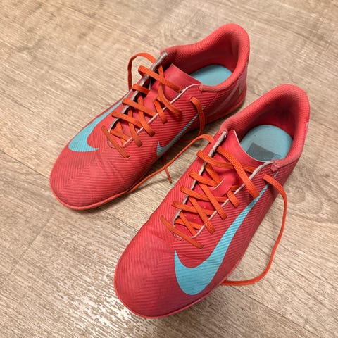 Nike Phantom fotballsko i størrelse 38,5. Skoene har knotter tilpasset spill på kunstgress eller grus. For barn er dette et godt alternativ til større knotter.