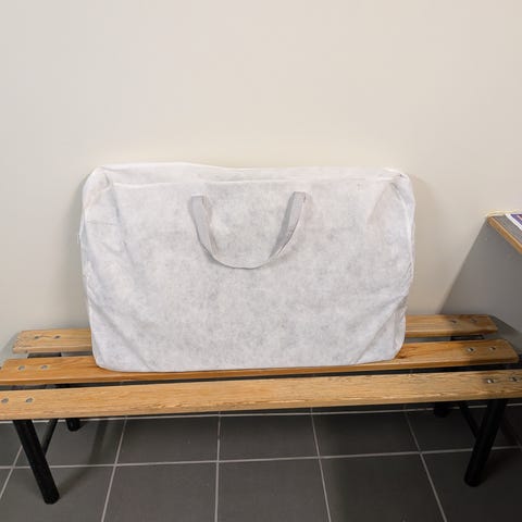 Enkel å justere og håndtere, og deler av benene er litt fleksible (og så er det hjul i ene enden) så du får den inn trange steder enkelt. Ikke særlig tung er den heller ikke.