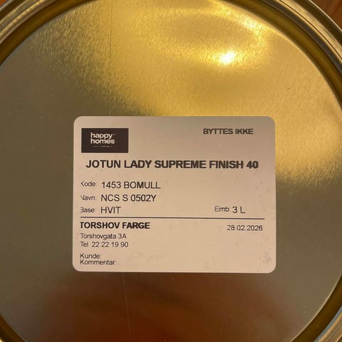 Spannet inneholder 3 liter maling, og er ubrukt da vi kjøpte feil farge.