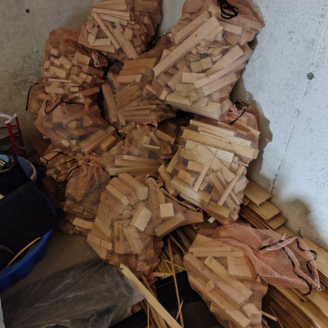 Blandet kapp hvitt trevirke som kan dages til ved. 1-2 kubikk. Må hentes i dag.