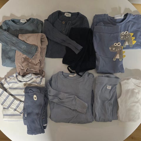Det er forskjellige klesmerker som benevnes under bildene. Normal størrelse 4-6 mnd.