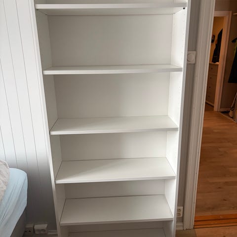 Hylle/bokhylle i heltre hvitmalt furu, 199cm
