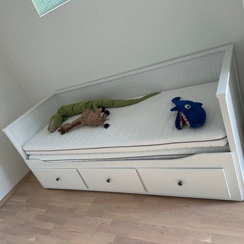 Sengen har bruksmerker og kan trenge et lite malestrøk - se bilder for tilstand