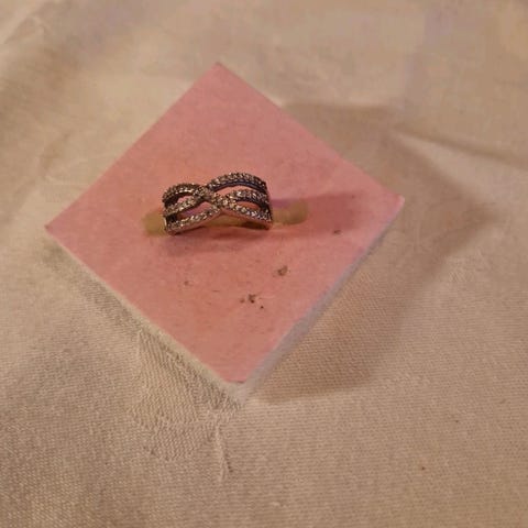 Sølvring med zirconer. Diameter 16,6 mm. Ikke helt rund.