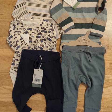 Hust & Claire barneklær sett i størrelse 98 for unisex. Sett med blå langermet body/genser med mønster og motiv, samt ensfargede bukser. Passer til hverdagsbruk for barn rundt størrelse 98. Farge: blå. Sendes mot frakt