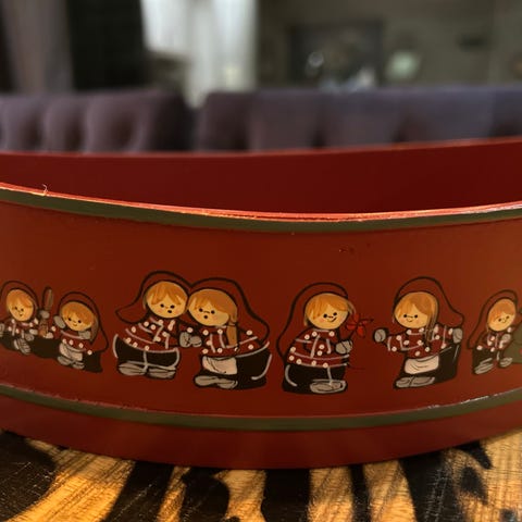 Dekorativt flettet kurv i god stand - minimalt med bruksmerker. Treverk. Lengde ca 38,5 cm, bredde ca 29 cm og høyde 9 cm. Perfekt til servering av brød / rundstykker eller annet bakverk. Kan også fint brukes til annen dekorativ oppbevaring og organisering.