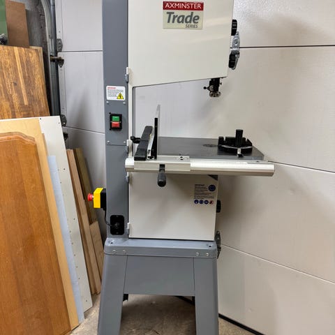 Båndsagen har stabilt sagbord med integrert linjal for mer presise kutt. Maskinen drives av en elektrisk motor fra Meec Tools, og er egnet til rette kutt og buede kutt i treverk og lignende materialer innen hobby- og verkstedsbruk. På fremsiden finnes tydelig av/på-bryter samt sikkerhetsmerking.