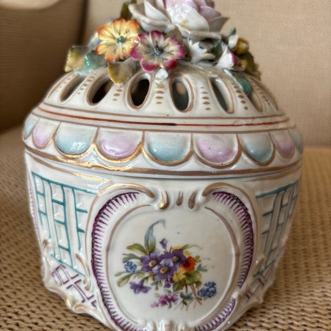 Meissen porselensvaser med lokk hvit flerfarget blomsterdekor