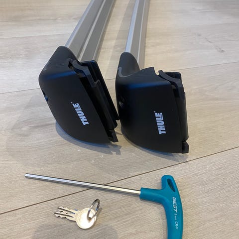 Thule takstativ for biler med takrelinger (flush rails). Dette er et allsidig sett som passer til mange nyere bilmodeller.