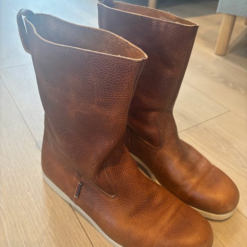Gode og varme. Skinnet og sålen er intakt, men noe slitt på tuppen av støvlene.