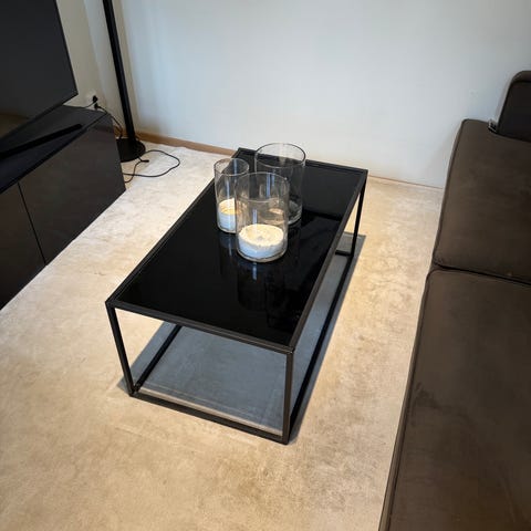 Bella misura marble black - salongbord og pidestall i svart marmor. Bordet er 101 cm langt, 35 cm høyt og 50 cm bredt. Pidestall er 35 cm x 35 cm, og 61 cm høyt.
