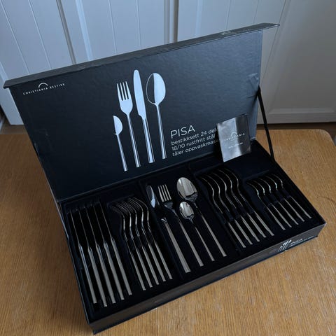 Villeroy & Boch Modern Grace bestikksett i rustfritt stål. 24 deler ,inneholder 6 gafler,6 kniver, 6 skjeer og 6 teskjeer imoderne design. Bestikket leveres i formstøpt eske som holder delene på plass og gjør det enkelt å oppbevare. Egnet til daglig bruk på kjøkkenet eller til servering ved borddekking.