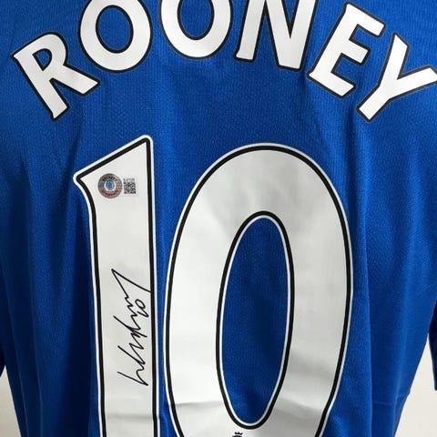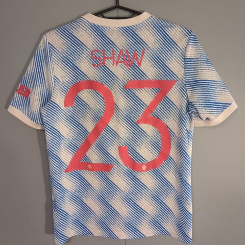Manchester City hjemmedrakt signert av Erling Haaland, Pep Guardiola, Rodri, Rico Lewis, Nathan Aké, Rayan Aït-Nouri og Rayan Cherki.