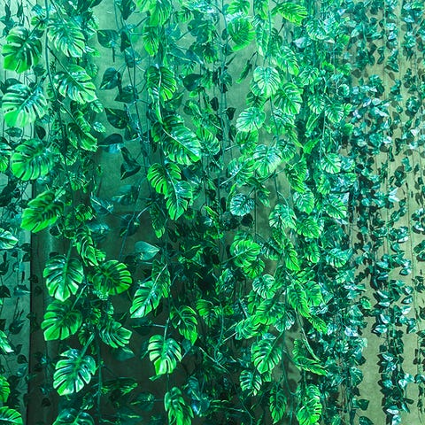 IKEA kunstig monstera-plante i grønn farge. Består av flere store blader med lange stilker i plastmateriale. Egnet som dekorasjon innendørs gjennom hele året, Vase er ikke med bare plante