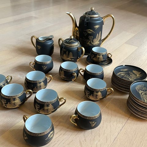 Teservise porselen med japansk motiv flerfarget