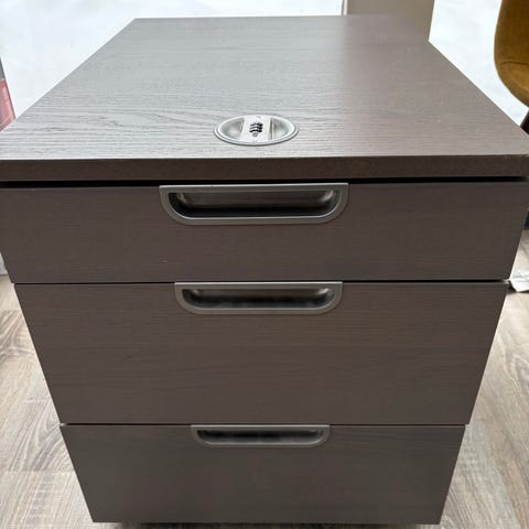 Reol i lyst treverk med åpne hyller og integrert skuff. Øverst er det to åpne hyller for oppbevaring av bøker, dekor eller annet. Under hyllene er det en skuff med metallhåndtak, samt et ekstra oppbevaringsrom nederst. Møbelet egner seg til kontor e.l