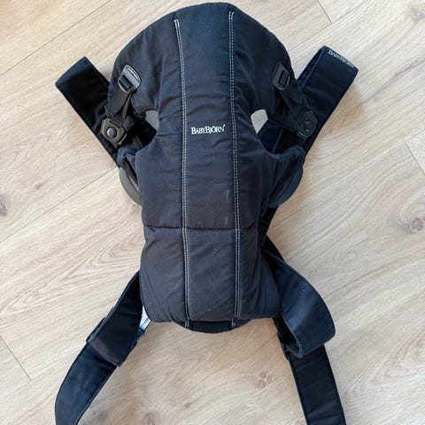 Babybjörn Mini bæresele i svart. Klassisk modell med justerbare skulderremmer og midjestropp for god tilpasning til den som bærer. Bæreselen har støtte til babyens hode og rygg, og kan brukes med barnet vendt innover eller utover (avhengig av alder og vekt, se produsentens anbefalinger). Egnet til å bære spedbarn og små barn innenfor vekt- og høydegrensene som er angitt på produktet. Stoffet er mykt og polstret for økt komfort for både barn og bærer.