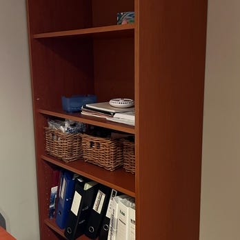 Gir bort en brukt IKEA hylle. Kan brukes både stående og liggende. Kan stå på gulv og henges opp.