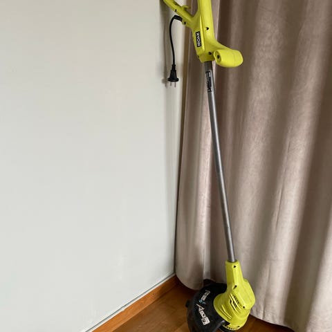 Ryobi gresstrimmer. Elektrisk hagemaskin egnet til trimming av gresskanter og mindre gressflater. Har ergonomisk håndtak og rett skaft. Passer til vanlig hagebruk der det er behov for å komme til langs kanter, rundt bed og lignende områder der gressklipper ikke kommer til. Batteri følger ikke med.