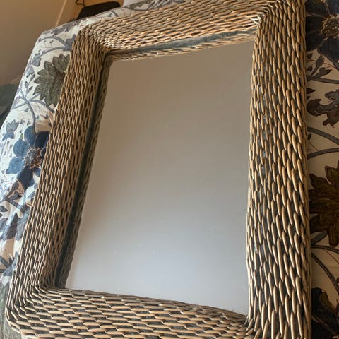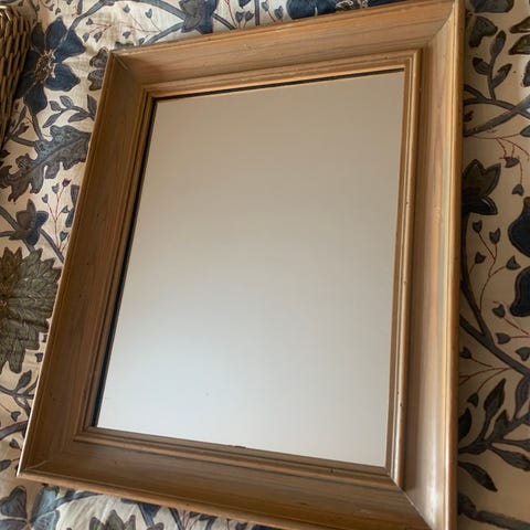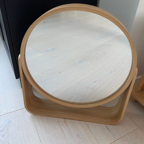 Speil rundt med hylle i lyst tre