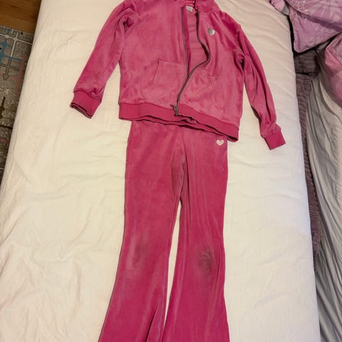 Det er to deler lille hette jakke og genser for jenter . Størrelser står på bildene . Selges smaller eller enkelt. Hver del er 130 kroner .