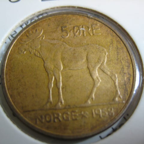 5 øre 1957 kv 0 ,selges kr 200.-+porto