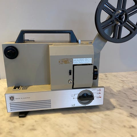 selger en 16mm filmfremviser, har testet den og den snurrer film. . men litt kjærlighet trengs, en spak eller hendel som skal holdes inne i det du setter filmen inn i fremmviseren er litt hard, trengs litt styrke. men kan sikkert fikses. hvis den ikke presses inn ordentlig så vil ikke filmen gå igjennom systemet. prøvde par ganger og fikk det til og fungere tilslutt. mulig litt småfiks der, lyden spraker når volumekontrollen beveges så trengs en rensing sikkert, pæra er ny. har ikke brukt den annet en liten test, følger med ekstra linse, forskjellige skruknotter på den, ikke så kjent med dette selv, er tung så må hentes, følger med to filmruller med litt film på. samt en tomrull. ene filmrullen er ukjent, står ingenting på den,