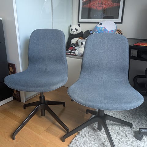 2 stk. IKEA kontorstol rød med armlener og hjul