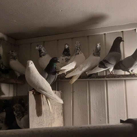 Fine ungdyr fra våren 2025 av rasen glattbenet isdue selges for kr 400 pr stk.