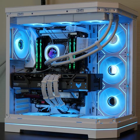 Gaming PC, kraftig PC, RTX, GeForce RTX, i7, Intel i7, 32 GB RAM, vannkjølt PC, hvit gaming PC, ARGB, RGB PC, high-end gaming, 4K gaming, 1440p gaming, workstation PC, streaming PC, redigerings-PC, ASUS ROG, NVMe SSD, 4 TB SSD, rask PC, stillegående PC, ferdig bygget PC