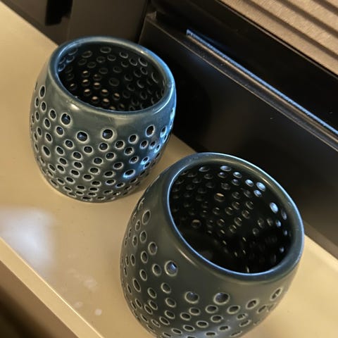 Fine små plantepotter, fine til miniatyrplanter eller stiklinger! 25kr for hver eller 40 kr samlet. De er mellom 6-7 cm høye og har ca 8cm diameter.