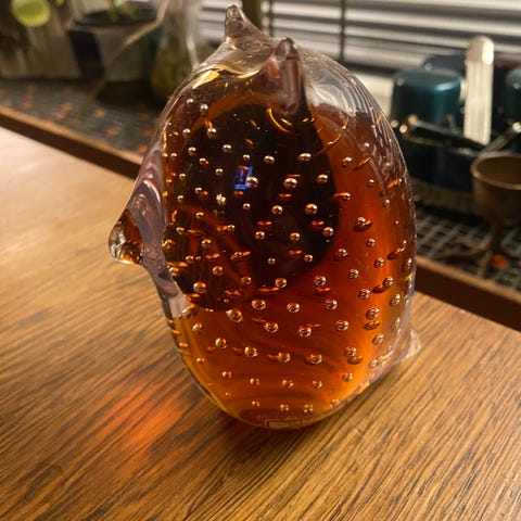 En stor ugle til å ha kubbelys opppå. Du kan også ha en en lyslenke inni.