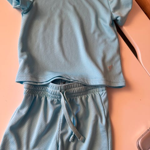Passer til fotballtrening og annen fysisk aktivitet. Materialet er typisk lett og pustende polyester egnet for idrettsbruk.