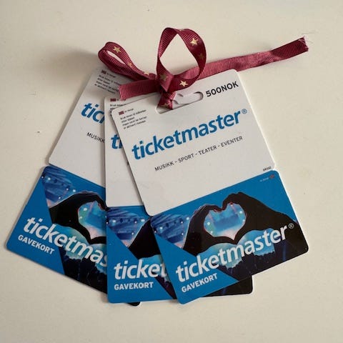 Ticketmaster e-gavekort med verdi 400 NOK. Gavekortet kan brukes til kjøp av billetter via ticketmaster.no i henhold til gjeldende vilkår fra utsteder. Gyldighetsperiode og øvrige betingelser fremgår av gavekortet.