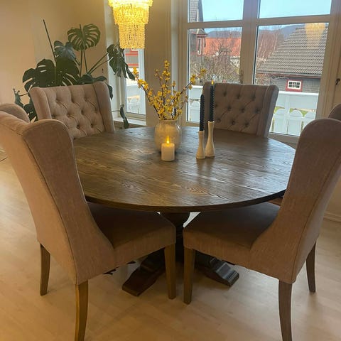 Halvor bakke spisebord, Ø180, følger med en ileggsplate.