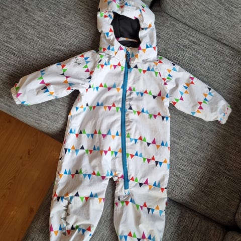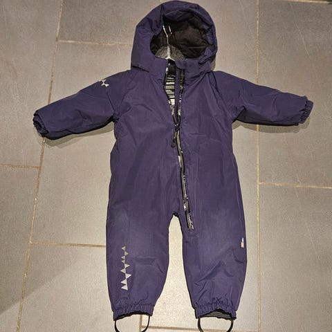 God, varm, romslig vinterdress. super fornøyd!!!! En flekk på den ene armen (se bilde) og litt «sliten» i fargen ved glidelåsen etc. se bilde. Men ingen hull og strikkene er intakte.