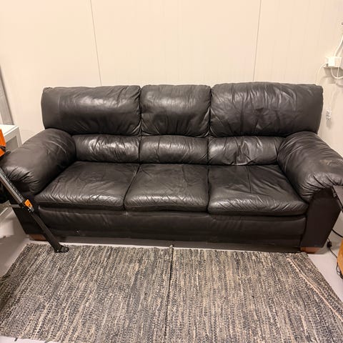 Brun skinnsofa gis bort