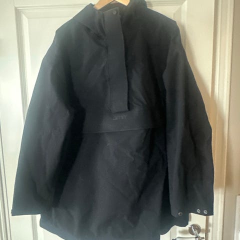 Jotunheim ytterjakke for dame i størrelse S. Jakken er svart og laget i bomull. Modellen har hette med snøring, glidelås og klaff med knapper foran. Flere lommer foran med klaff og lukking. Justering nederst på jakken med snøring. Egnet som annet yttertøy til hverdagsbruk og tur i mildere værforhold. Den er helt ny, et par år gammel aldri brukt. Men har dessverre ikke lappen bare byttelapp.