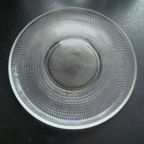 Hadeland Glassverk glassfat i klart glass. Fatet har rund form med bølget mønster langs kanten og sirkelformet markering i midten. Egner seg til servering av kaker, frukt eller andre retter på bordet. Klassisk, transparent design som passer inn med ulikt servise og kjøkkenutstyr. Str diameter 34,5 cm