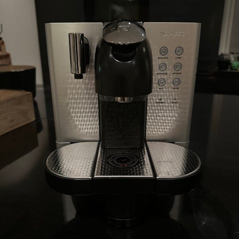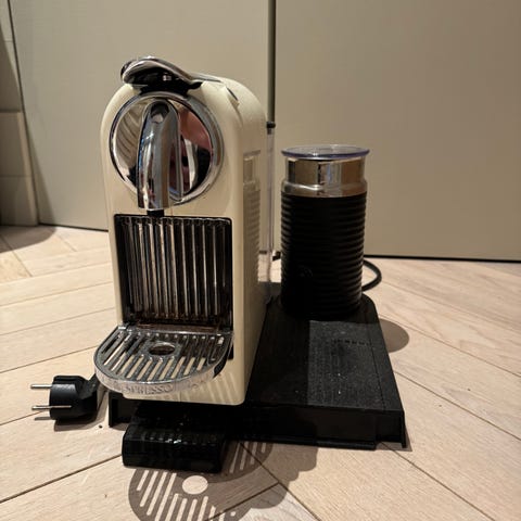 Nespresso-kaffemaskinen er lite brukt, fordi den ikke klarer å pumpe vann inn i maskinen lenger eller den pumper inn veldig lite vann. Melkeskummeren fungerer derimot helt fint (bare brukt én eller to ganger).