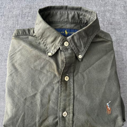 Ralph Lauren Polo skjorte herre L oliven bomull slim fit