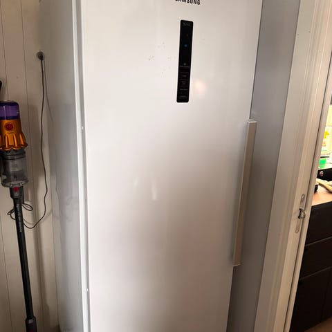 Samsung kjøleskap i frittstående høy modell. Kjøleskapet har frontdør med håndtak i full høyde og integrert display eller kontrollpanel øverst på døren. Egnet som hovedkjøleskap på kjøkken, i bod eller som ekstra kjøleskap i husholdningen. Nærmere tekniske spesifikasjoner som volum, energiklasse og mål er ikke oppgitt. Det er veldig fin å bruke kjøleskapet og kvaliteten er bra nok