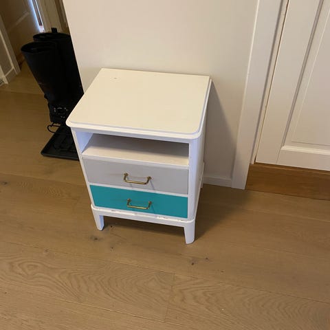 Lite malt nattbord gis bort mot henting i dag lørdag 😊. Noen bruksmerker på toppen, men kan lett males om.