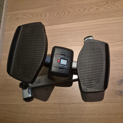 Kompakt mini-stepmaskin for hjemmetrening. Maskinen har display som viser blant annet tid, antall steg og kalorier.