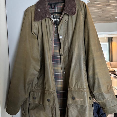 Selger en pent brukt Barbour Classic vokset jakke. Mørk olivenfarge (som både produktbilder og bilder av jakken viser). Ingen feil eller mangler.